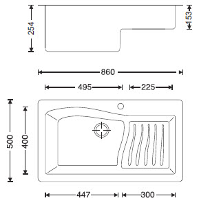 Νεροχύτης απο ορυκτό γρανίτη σε μαύρο χρώμα, πυρίμαχος (300 °C) και ανθεκτικός στα χτυπήματα και στα οξέα.
