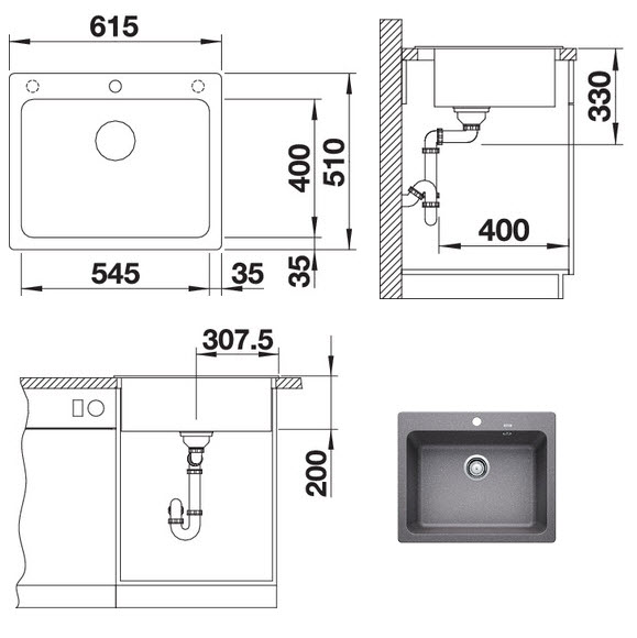 ετοιμοπαράδοτα προϊονταΝεροχύτης γρανίτη 61,5x51cm Blanco Naya 6 Alu Metallic.