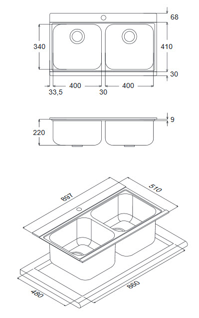 *Προετοιμασμένος για νεροχύτη. Συμπεριλαμβάνονται 2 κρύσταλλα συρόμενα White ή Silver ή Black, "αόρατες" βαλβίδες, σωληνώσεις και λιποσυλλέκτης.