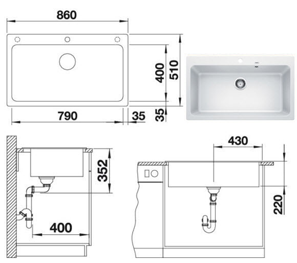 Συμπεριλαμβάνονται βαλβίδα και σιφόν ειδικά σχεδιασμένα για να αφήνουν διαθέσιμο περισσότερο χώρο κάτω από τον νεροχύτη και κλιπς εντοιχισμού για τοποθέτηση σε πάγκους οποιουδήποτε πάχους