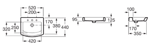Πορσελάνινος λευκός νιπτήρας κατάλληλος και για ελεύθερη τοποθέτηση σε διάσταση 52x44cm απο την Roca.