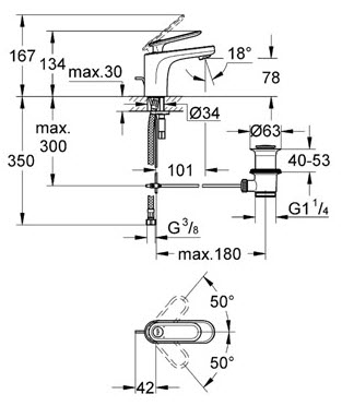 Χαμηλή Μπαταρία Νιπτήρος Veris με μια οπή και σετ αυτόματης βαλβίδας 1 1/4" χρωμέ απο την Grohe.