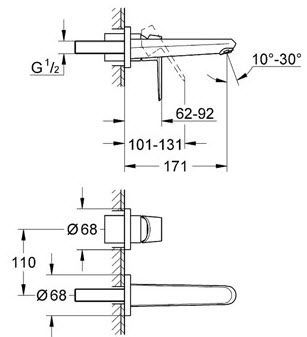 ετοιμοπαράδοτα προϊονταΜπαταρία νιπτήρος τοίχου Eurodisc Cosmopolitan δύο οπών M-Μέγεθος 19573002 χρωμέ, Grohe.