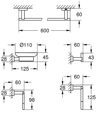 χαρτοθήκη και σαπουνοθήκη με βάση, το σετ αξεσουάρ GROHE Essentials Cube