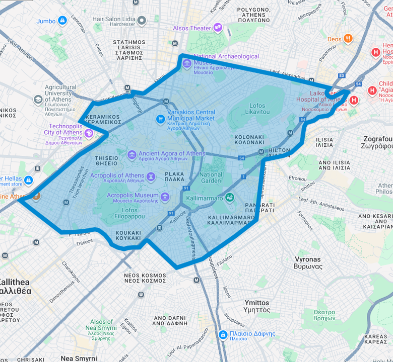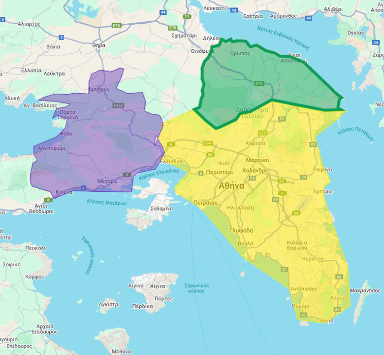 - Όρια Ζώνης: Ελευσίνα - Μάνδρα - διόδια Αφιδνών - Μαραθώνας - Σούνιο